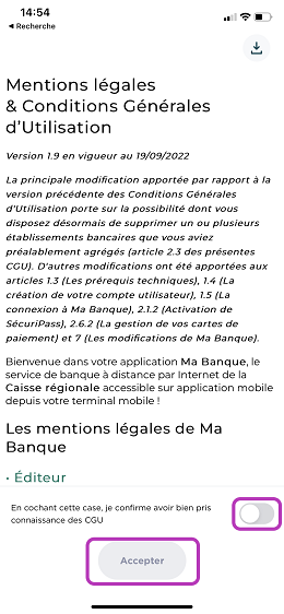 Prenez connaissance et acceptez les Mentions Légales et les Conditions Générales d'Utilisation. |
