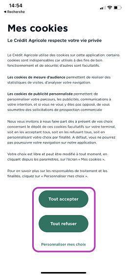 Votre application utilise des cookies, vous pouvez les accepter, les refuser ou personnaliser votre choix. |