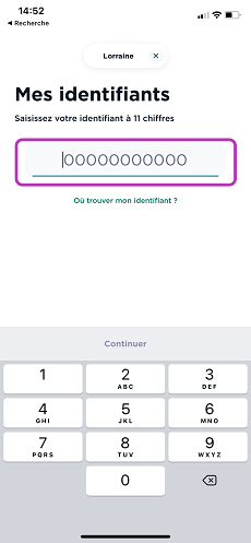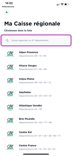 Choisissez votre caisse régionale et entrez votre identifiant à 11 chiffres, le même que pour vous connecter à votre Espace Sécurisé en ligne. |