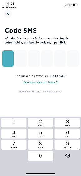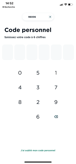Saisissez ensuite votre code personnel à 6 chiffres, le même que pour vous connecter à votre Espace Sécurisé en ligne. |
