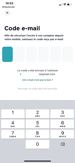 Puis finalisez l'activation de SécuriPass, saisissez le code à 6 chiffres que vous avez reçu par mail. |