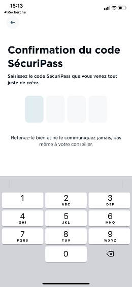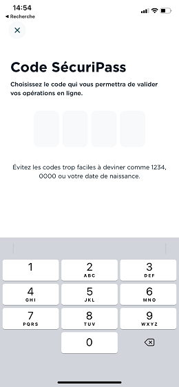 Définissez votre code SécuriPass à 4 chiffres et gardez-le bien en mémoire, il vous sera demandé pour valider vos opérations. |